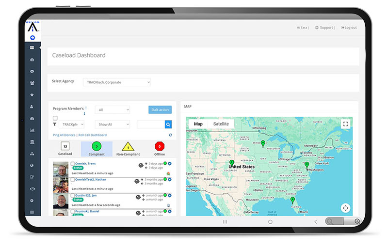 TRACKtech's Criminal Justice Platform allows agencies to sign into a single system for management of Justice Involved Individuals. System provides comprehensive accountability, case management, and location monitoring services in a single dashboard.